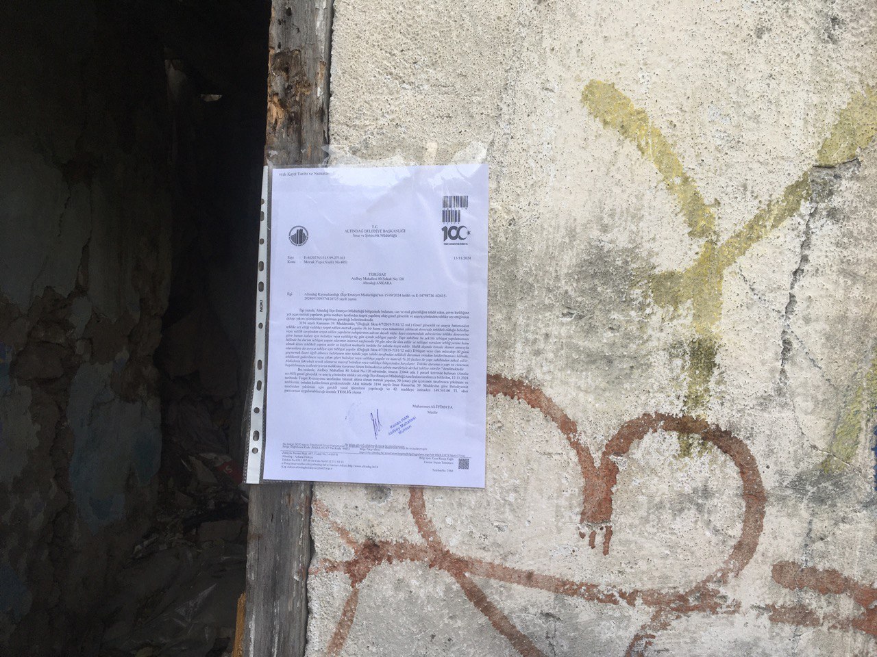 Atıfbey Mahallesi 80 Sokak No:120 Yıkım Tebligatı