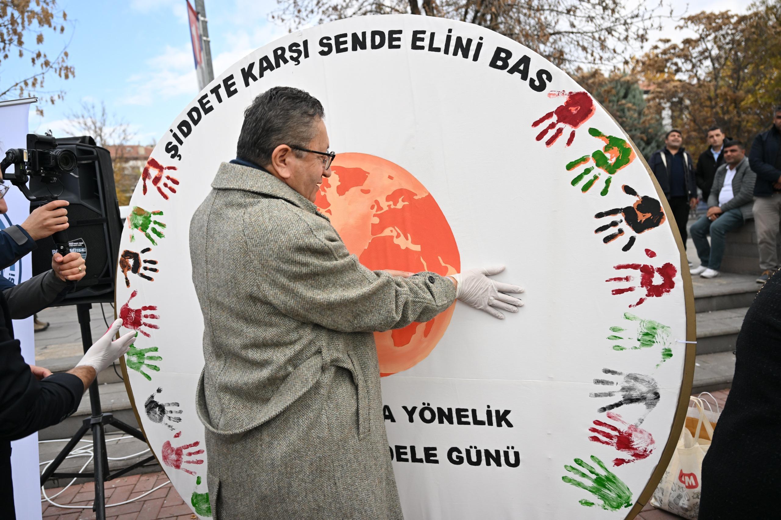 Açılış konuşmalarının ardından Başkan Tiryaki ve diğer katılımcılar, özgür bir Filistin’e kavuşmak dileğiyle, ellerindeki balonları gökyüzüne bıraktı. Başkan Tiryaki daha sonra, kadına yönelik şiddete dikkat çekmek amacıyla hazırlanan panoya el izini bıraktı.